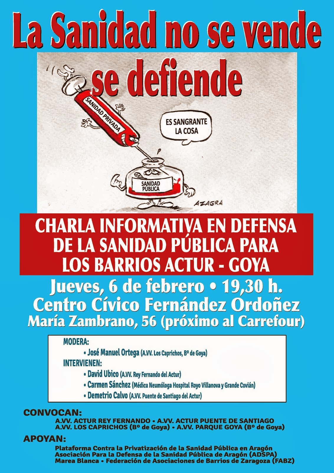 Plataforma Contra la Privatización de la Sanidad en Aragón Charla Informativa en Defensa de la