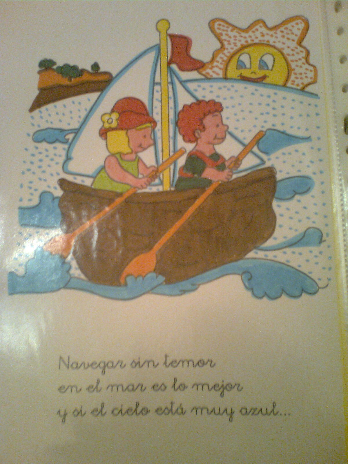 en el mar es lo mejor, no hay razón de ponerse a temblar. Y si viene negra tempestad. reír, remar, y cantar. Un barquito de cáscara de nuez. adornado con velas de papel. se hizo hoy a la mar. para lejos llevar. gotitas doradas de miel.
