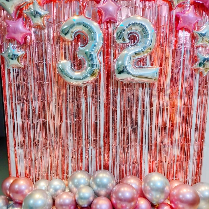 Cortina Metalizada Rose Gold para Festa Aniversário Fita Metalizada
