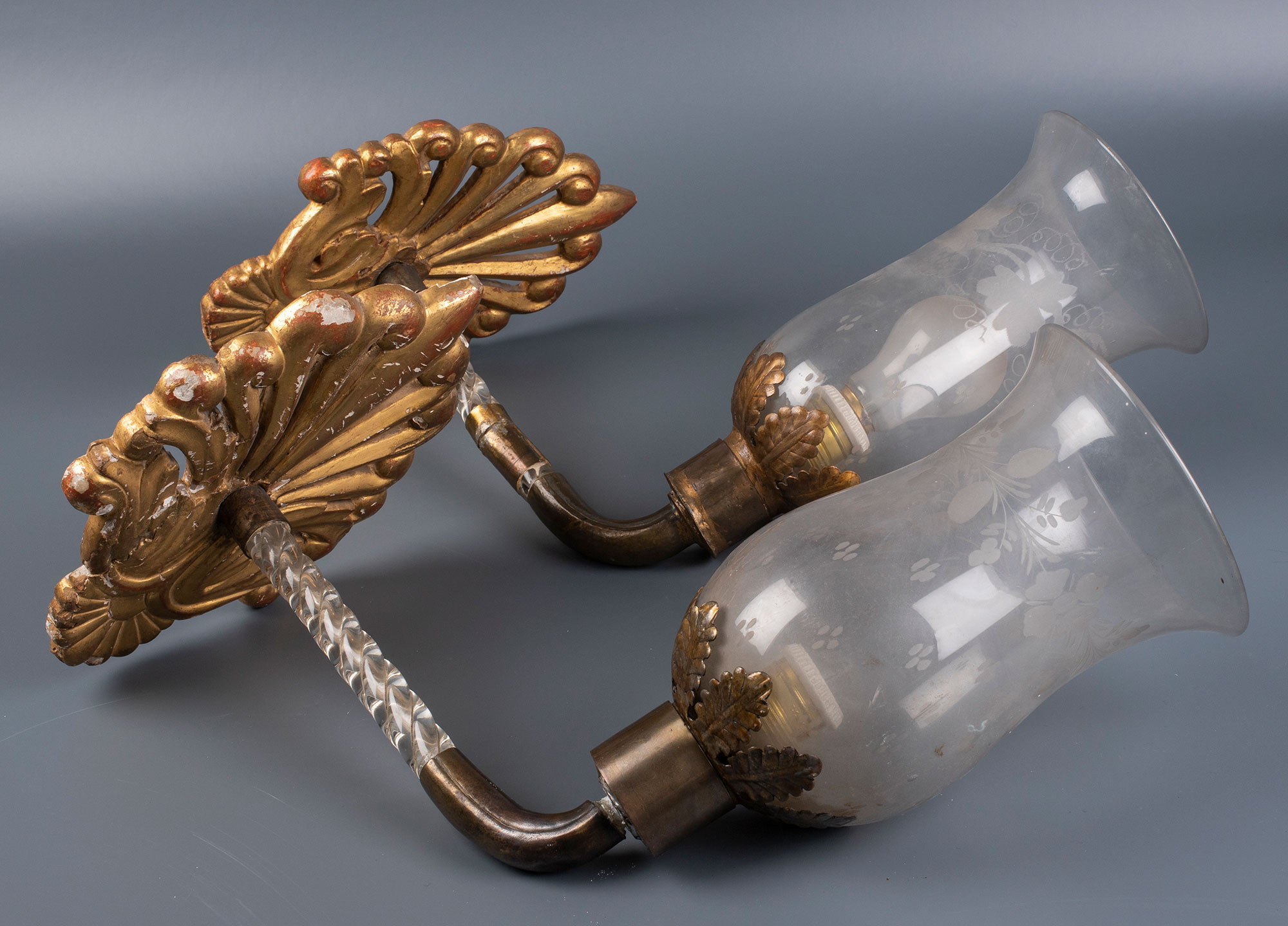 PAREJA DE APLIQUES EN CRISTAL DE LA GRANJA,