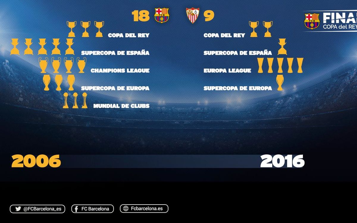 27 copas entre el Barça y el Sevilla en los últimos diez años