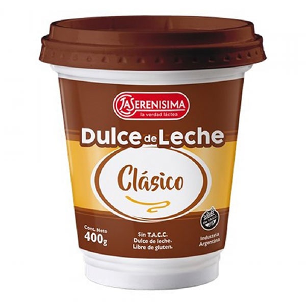 Dulce de leche argentino La Serenísima Clásico. Puede que te interesen estos. $6.990 CLP. $7.990 CLP. Dulce de leche argentino La Serenísima Clásico Elaborado en Argentina, con notas suaves a caramelo y vainilla. Se caracteriza por tener un color más claro, cuerpo cremoso y sabor más suave respecto al Dulce de Leche Colonial.
