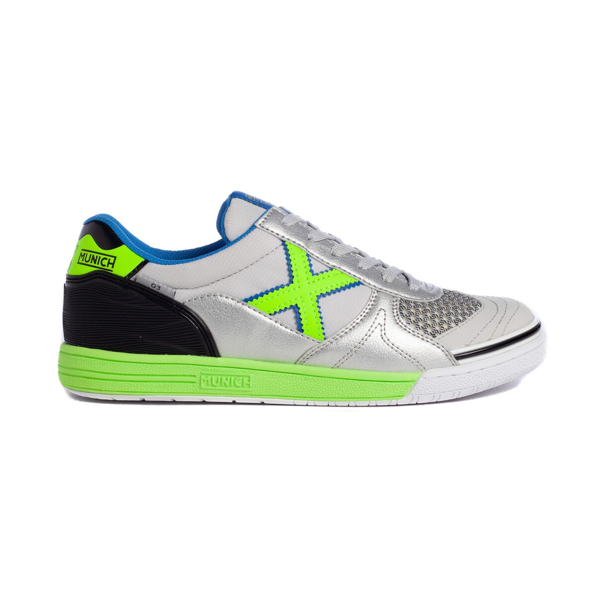 Munich G3. Munich G3 son unas zapatillas Fútbol Sala Hombre con un diseño moderno y deportivo. Estas zapatillas ofrecen un ajuste cómodo y una suela de goma para una mayor tracción. Son perfectas para los entrenamientos y partidos de fútbol sala. Lavar a máquina. No usar secadora.