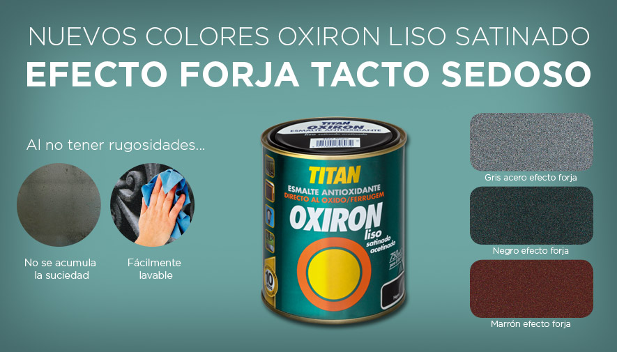 100% secure payments. Oxirón forja de Titan es un esmalte metálico de altos sólidos, de gran adherencia, elasticidad y resistencia a la intemperie, de aplicación directa sin necesidad de preparación previa. Proporciona protección y decoración de cualquier superficie de hierro, a las que confiere un acabado metálico natural tipo forja.