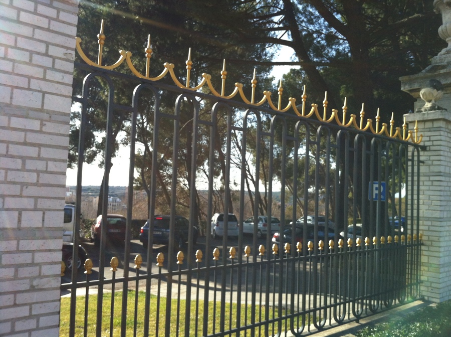 Pintamos valla exterior en muy mal estado con pistola HVLP y pintura Titan oxiron pavonado negro. Previamente la hemos limpiado con Karcher y lijado.